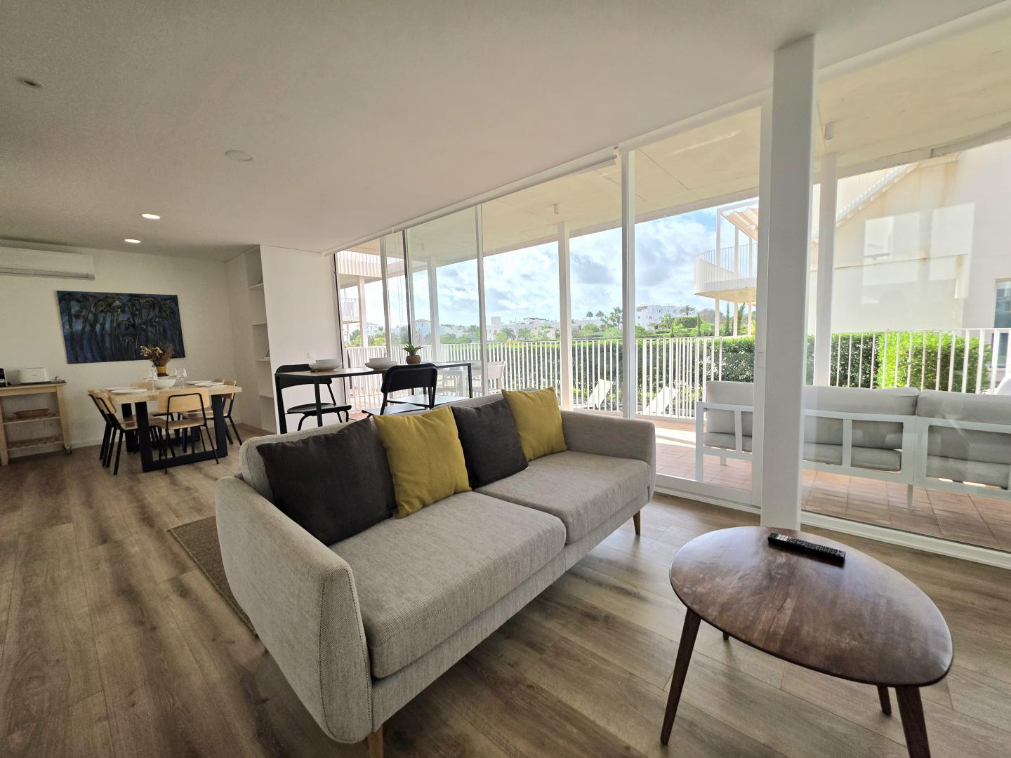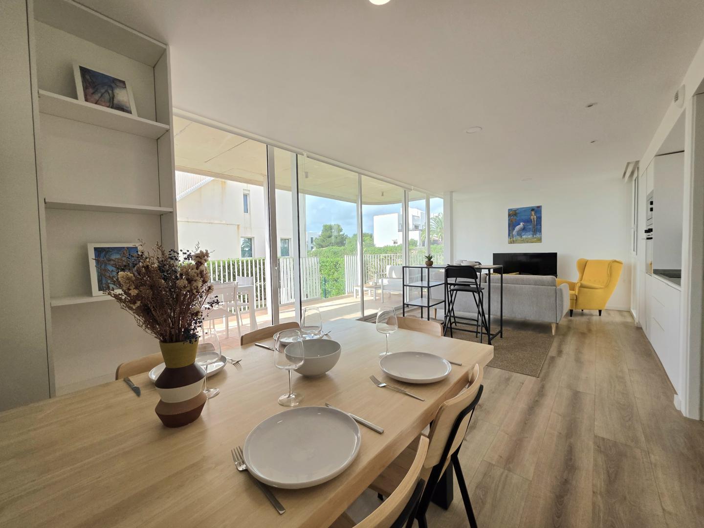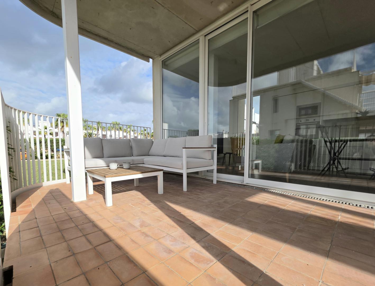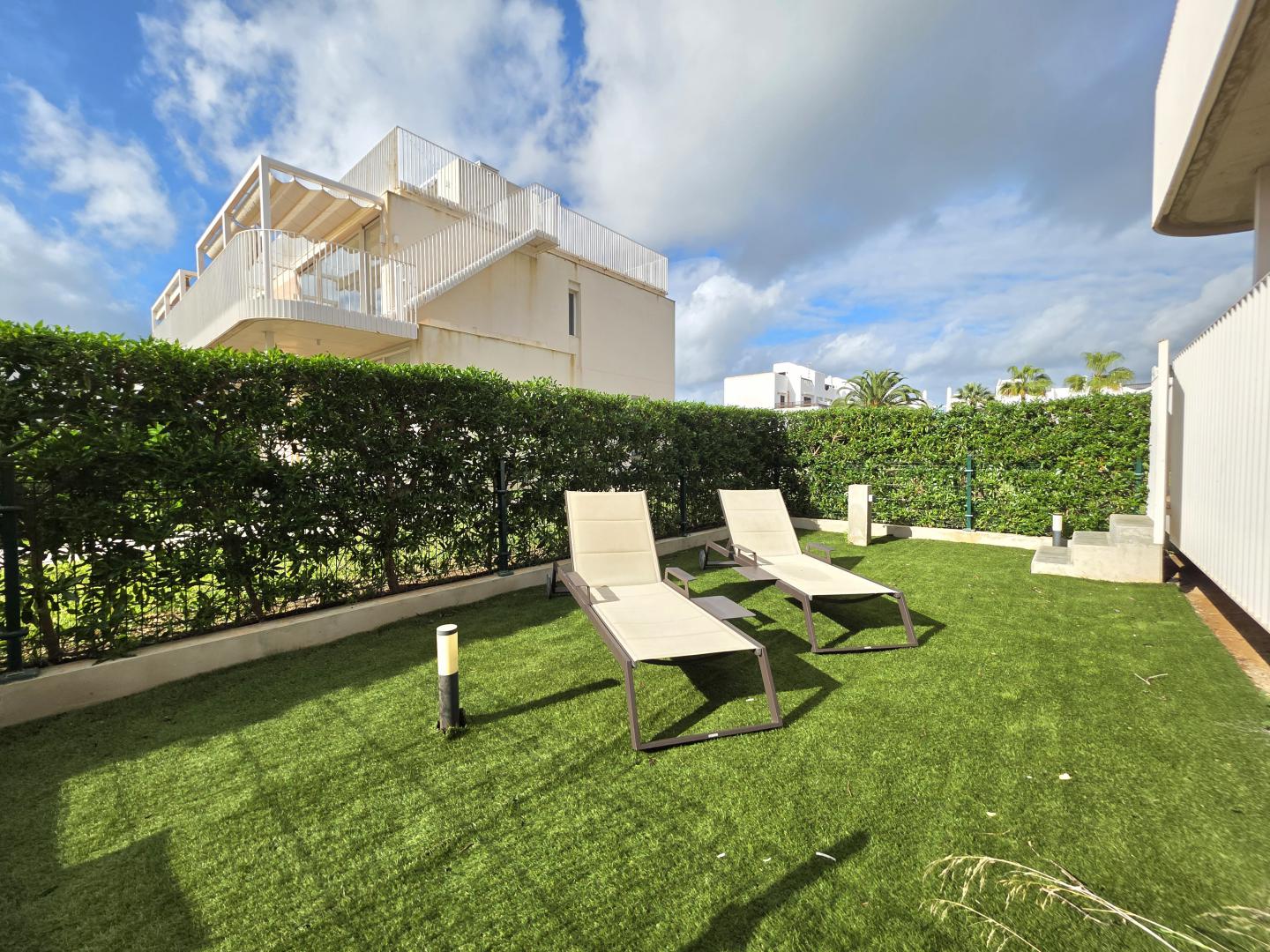 EXTRAORDINARIO Y MODERNO APARTAMENTO EN PLANTA BAJA EN UN COMPLEJO DE RECIENTE CONSTRUCCIÓN (2020) DE SOLO 3 BLOQUES Y 16 VIVIENDAS EN TOTAL, UBICADO EN UNA AMPLIA PARCELA CON APARCAMIENTO CERRADO, RODEADO DE JARDINES BIEN CUIDADOS Y UNA PISCINA, ADEMÁS DE UNA PISCINA INFANTIL. UBICADO A SOLO 150 METROS DE LA PLAYA, RESTAURANTES, SUPERMERCADOS, TIENDAS Y CAFETERÍAS, Y A UNOS 10 MINUTOS A PIE DEL LUJOSO PUERTO DEPORTIVO DE CALA D’OR. 64 M² DE SUPERFICIE HABITABLE DISTRIBUIDOS EN UN AMPLIO Y LUMINOSO SALÓN-COMEDOR CON COCINA ABIERTA, ELEGANTEMENTE PANELADA Y EQUIPADA CON ELECTRODOMÉSTICOS DE ALTA CALIDAD, DOS DORMITORIOS DOBLES, DOS BAÑOS COMPLETOS CON DUCHA (UNO DE ELLOS EN SUITE) Y AIRE ACONDICIONADO. LAS PUERTAS CORREDERAS DE CRISTAL SE ABREN A UNA AGRADABLE TERRAZA CUBIERTA CON ESPACIO PARA COMER Y RELAJARSE, Y A UN JARDÍN PRIVADO, PERFECTO PARA CONECTAR CON EL ESTILO DE VIDA MEDITERRÁNEO. CONTÁCTENOS PARA VISITARLO. SU HOGAR JUNTO AL MAR LE ESTÁ ESPERANDO.