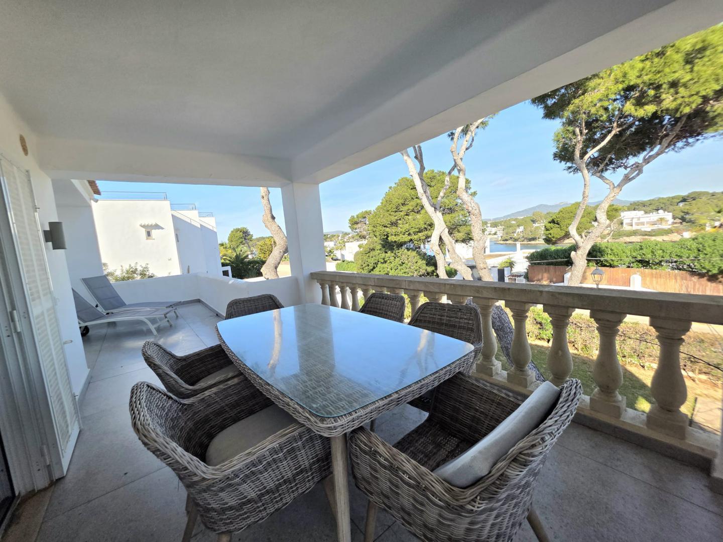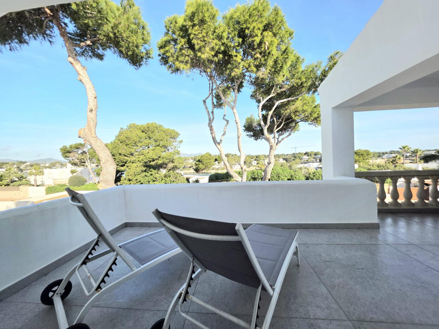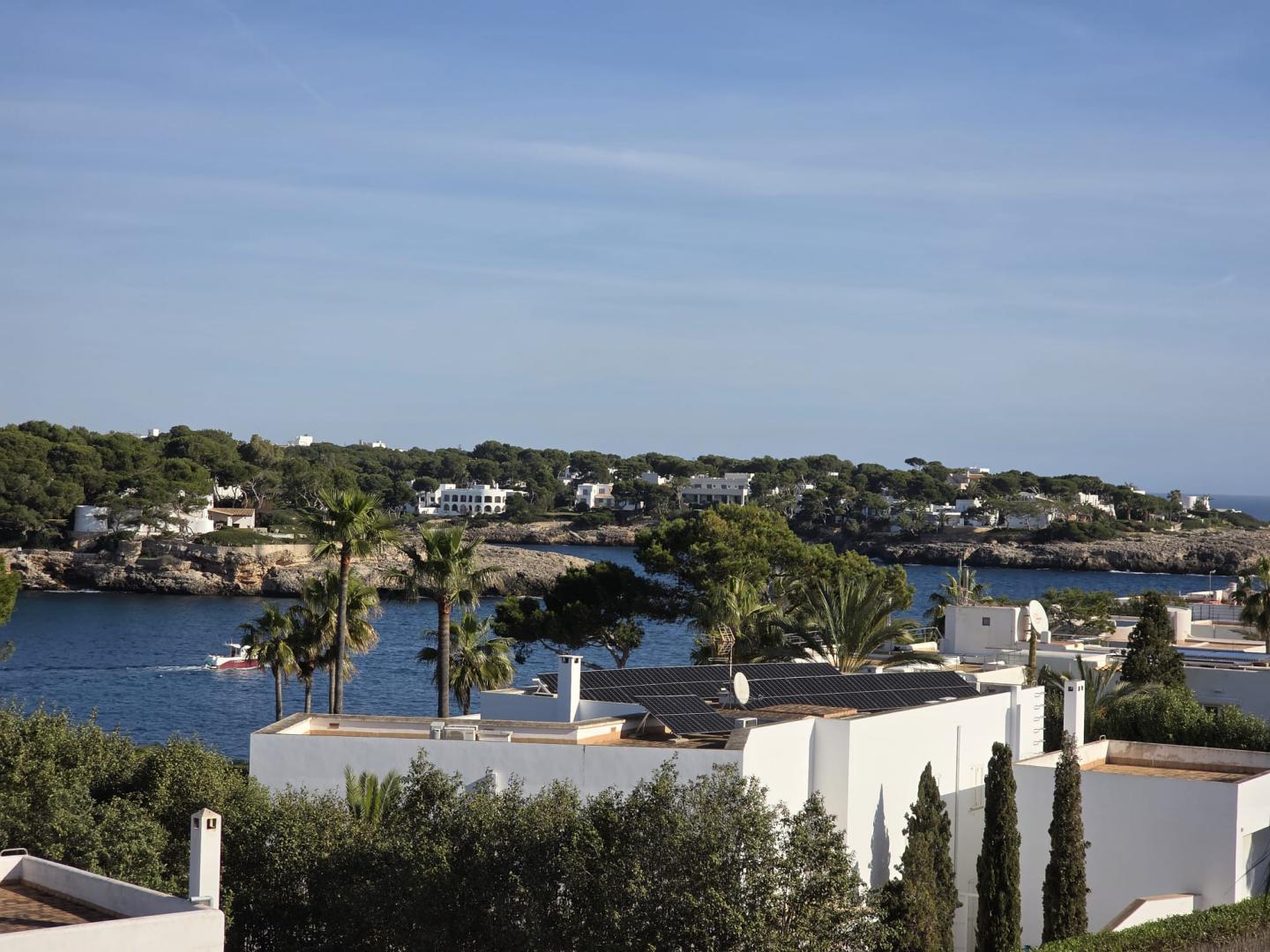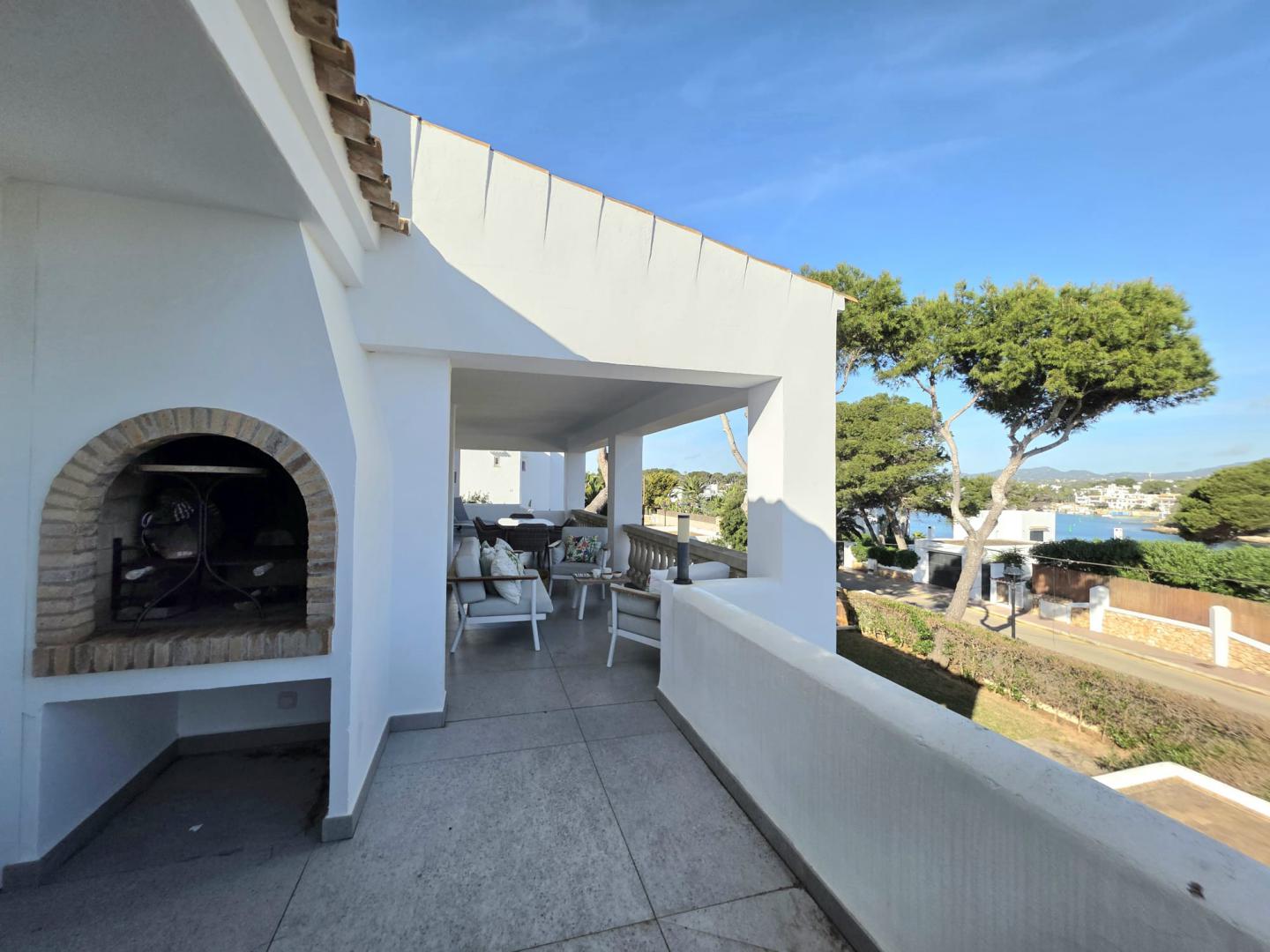 THIS AMAZING AND UNIQUE PROPERTY IS IDEALLY POSITIONED ON THE SECOND LINE IN THE HIGHLY SOUGHT-AFTER AREA OF ES FORTI. SITUATED ON THE FIRST AND TOP FLOOR OF AN EXCLUSIVE BUILDING COMPRISING ONLY THREE RESIDENCES, THIS REMARKABLE APARTMENT OFFERS AN EXTRAORDINARY LEVEL OF PRIVACY, TRANQUILITY, AND PRESTIGE IN ONE OF THE MOST DESIRABLE ENCLAVES OF SOUTHEAST MALLORCA. THE PROPERTY BOASTS AN IMPRESSIVE INTERIOR LIVING SPACE OF 176 M², BEAUTIFULLY COMPLEMENTED BY A 27.30 M² FRONT PORCH, A 12 M² REAR PORCH, AND APPROXIMATELY 65 M² OF OPEN AND COVERED TERRACES DESIGNED TO EMBRACE THE MEDITERRANEAN LIFESTYLE THROUGHOUT THE YEAR. AN EXCLUSIVE PRIVATE ROOFTOP TERRACE ENHANCES THE SENSE OF SECLUSION AND LUXURY, WHILE A SPACIOUS 35 M² PRIVATE GARAGE ADDS BOTH CONVENIENCE AND VALUE. THE WELL-MAINTAINED COMMUNITY FEATURES A LARGE SWIMMING POOL SURROUNDED BY LANDSCAPED GARDENS AND A FABULOUS BARBECUE AREA, CREATING AN IDYLLIC SETTING FOR RELAXATION AND ENTERTAINING. COMPLETELY REFURBISHED TO THE HIGHEST STANDARDS, THE APARTMENT SHOWCASES REFINED TASTE, PREMIUM MATERIALS, AND FLAWLESS ATTENTION TO DETAIL. IT OFFERS FOUR GENEROUSLY PROPORTIONED BEDROOMS, EACH WITH ITS OWN EN-SUITE BATHROOM, AS WELL AS A GUEST TOILET. THE MODERN OPEN-PLAN KITCHEN, FULLY EQUIPPED AND CENTERED AROUND A SOPHISTICATED BAR, FLOWS SEAMLESSLY INTO THE EXPANSIVE LIVING AND DINING AREA, WHERE A FIREPLACE ADDS WARMTH AND CHARACTER TO THE ELEGANT AMBIANCE. A SEPARATE LAUNDRY ROOM WITH PANTRY PROVIDES ADDITIONAL PRACTICALITY WITHOUT COMPROMISING THE AESTHETIC HARMONY OF THE HOME. EVERY ASPECT OF COMFORT HAS BEEN CAREFULLY CONSIDERED, INCLUDING AIR CONDITIONING THROUGHOUT OPERATED VIA WIFI AND HOT/COLD/DEHUMIDIFYING, DOUBLE-GLAZED WINDOWS, ALUMINUM SHUTTERS, AND ENTIRELY RENEWED PLUMBING AND ELECTRICAL SYSTEMS. THE THOUGHTFUL LAYOUT, ABUNDANT NATURAL LIGHT, AND EXQUISITE FINISHES CREATE A RESIDENCE THAT IS BOTH LUXURIOUS AND WELCOMING. FROM ITS TERRACES, THE PROPERTY ENJOYS SPECTACULAR OPEN VIEWS OF THE SEA AND THE MARINA OF CALA D’OR, WHERE THE SHIMMERING MEDITERRANEAN BECOMES PART OF EVERYDAY LIFE. THIS IS A TRULY OUTSTANDING HOME THAT PERFECTLY COMBINES ELEGANCE, EXCLUSIVITY, AND AN UNRIVALED COASTAL SETTING.
