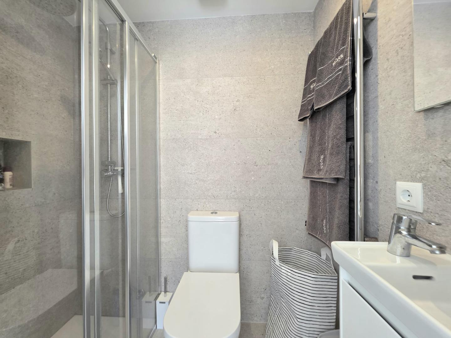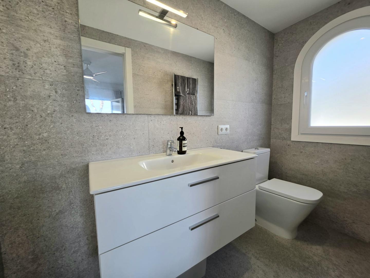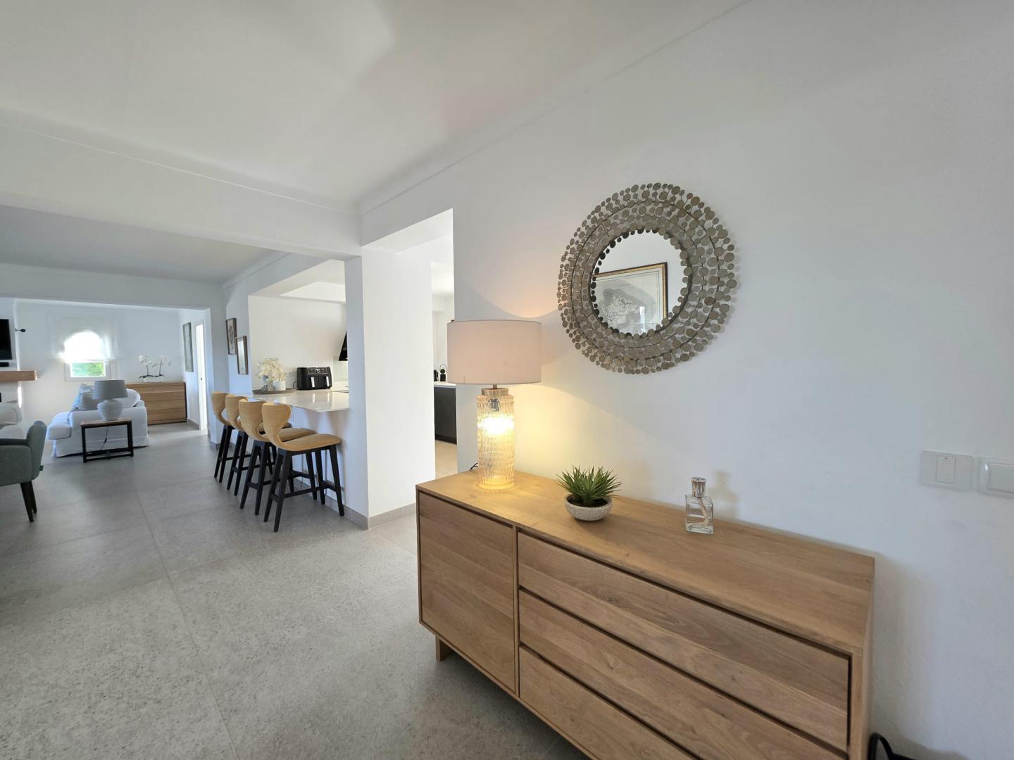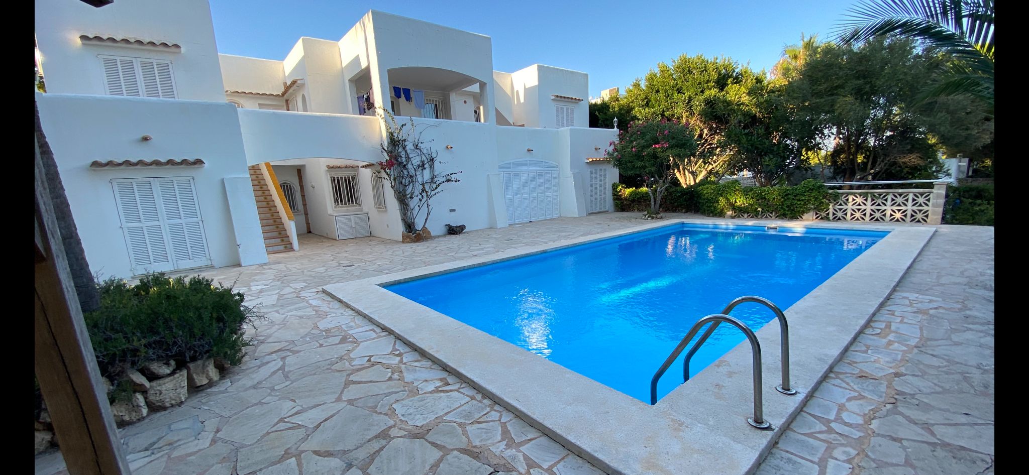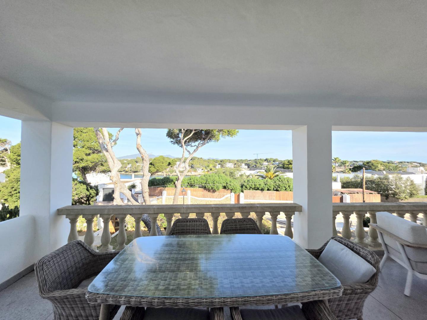 THIS AMAZING AND UNIQUE PROPERTY IS IDEALLY POSITIONED ON THE SECOND LINE IN THE HIGHLY SOUGHT-AFTER AREA OF ES FORTI. SITUATED ON THE FIRST AND TOP FLOOR OF AN EXCLUSIVE BUILDING COMPRISING ONLY THREE RESIDENCES, THIS REMARKABLE APARTMENT OFFERS AN EXTRAORDINARY LEVEL OF PRIVACY, TRANQUILITY, AND PRESTIGE IN ONE OF THE MOST DESIRABLE ENCLAVES OF SOUTHEAST MALLORCA. THE PROPERTY BOASTS AN IMPRESSIVE INTERIOR LIVING SPACE OF 176 M², BEAUTIFULLY COMPLEMENTED BY A 27.30 M² FRONT PORCH, A 12 M² REAR PORCH, AND APPROXIMATELY 65 M² OF OPEN AND COVERED TERRACES DESIGNED TO EMBRACE THE MEDITERRANEAN LIFESTYLE THROUGHOUT THE YEAR. AN EXCLUSIVE PRIVATE ROOFTOP TERRACE ENHANCES THE SENSE OF SECLUSION AND LUXURY, WHILE A SPACIOUS 35 M² PRIVATE GARAGE ADDS BOTH CONVENIENCE AND VALUE. THE WELL-MAINTAINED COMMUNITY FEATURES A LARGE SWIMMING POOL SURROUNDED BY LANDSCAPED GARDENS AND A FABULOUS BARBECUE AREA, CREATING AN IDYLLIC SETTING FOR RELAXATION AND ENTERTAINING. COMPLETELY REFURBISHED TO THE HIGHEST STANDARDS, THE APARTMENT SHOWCASES REFINED TASTE, PREMIUM MATERIALS, AND FLAWLESS ATTENTION TO DETAIL. IT OFFERS FOUR GENEROUSLY PROPORTIONED BEDROOMS, EACH WITH ITS OWN EN-SUITE BATHROOM, AS WELL AS A GUEST TOILET. THE MODERN OPEN-PLAN KITCHEN, FULLY EQUIPPED AND CENTERED AROUND A SOPHISTICATED BAR, FLOWS SEAMLESSLY INTO THE EXPANSIVE LIVING AND DINING AREA, WHERE A FIREPLACE ADDS WARMTH AND CHARACTER TO THE ELEGANT AMBIANCE. A SEPARATE LAUNDRY ROOM WITH PANTRY PROVIDES ADDITIONAL PRACTICALITY WITHOUT COMPROMISING THE AESTHETIC HARMONY OF THE HOME. EVERY ASPECT OF COMFORT HAS BEEN CAREFULLY CONSIDERED, INCLUDING AIR CONDITIONING THROUGHOUT OPERATED VIA WIFI AND HOT/COLD/DEHUMIDIFYING, DOUBLE-GLAZED WINDOWS, ALUMINUM SHUTTERS, AND ENTIRELY RENEWED PLUMBING AND ELECTRICAL SYSTEMS. THE THOUGHTFUL LAYOUT, ABUNDANT NATURAL LIGHT, AND EXQUISITE FINISHES CREATE A RESIDENCE THAT IS BOTH LUXURIOUS AND WELCOMING. FROM ITS TERRACES, THE PROPERTY ENJOYS SPECTACULAR OPEN VIEWS OF THE SEA AND THE MARINA OF CALA D’OR, WHERE THE SHIMMERING MEDITERRANEAN BECOMES PART OF EVERYDAY LIFE. THIS IS A TRULY OUTSTANDING HOME THAT PERFECTLY COMBINES ELEGANCE, EXCLUSIVITY, AND AN UNRIVALED COASTAL SETTING.