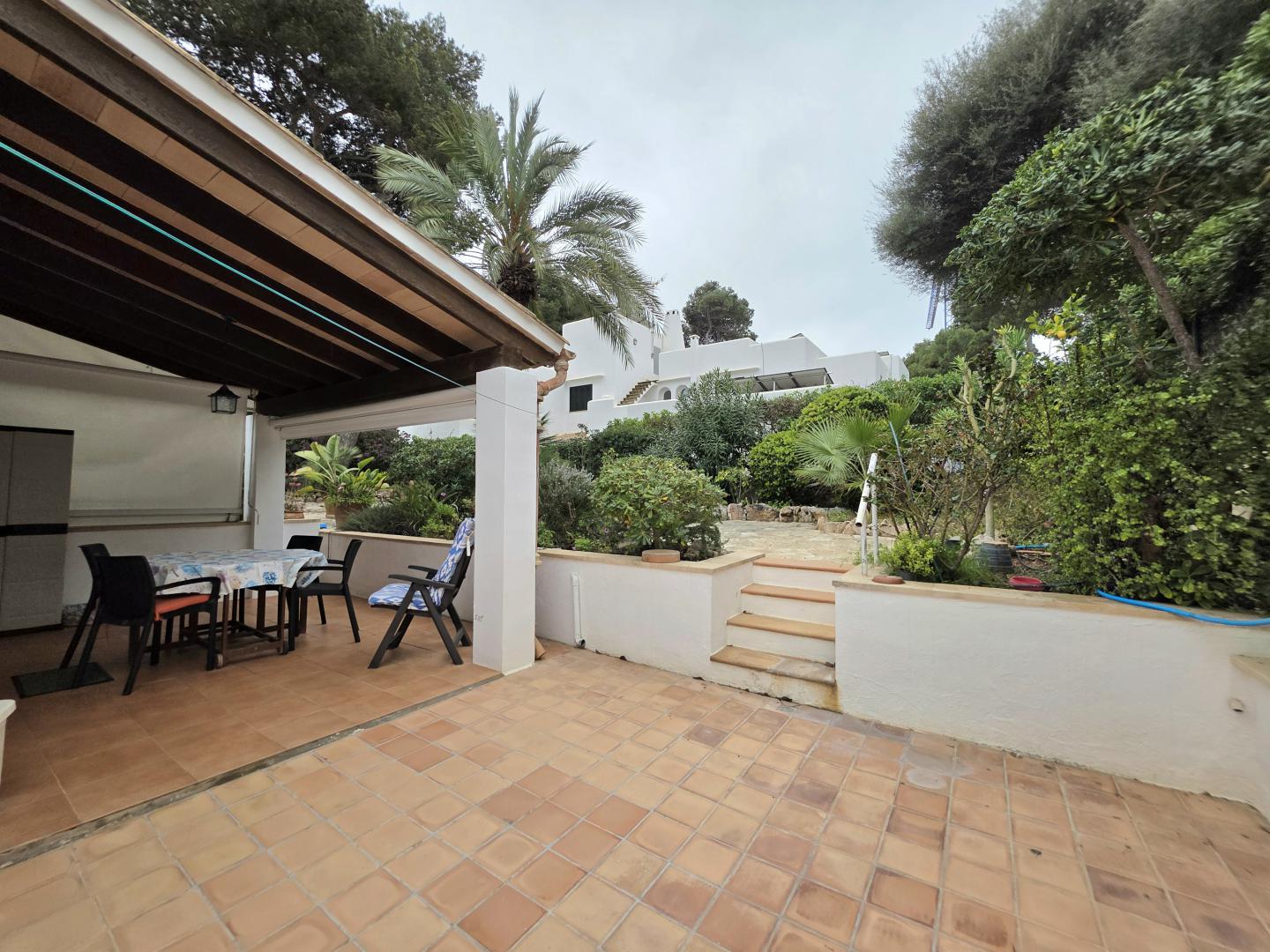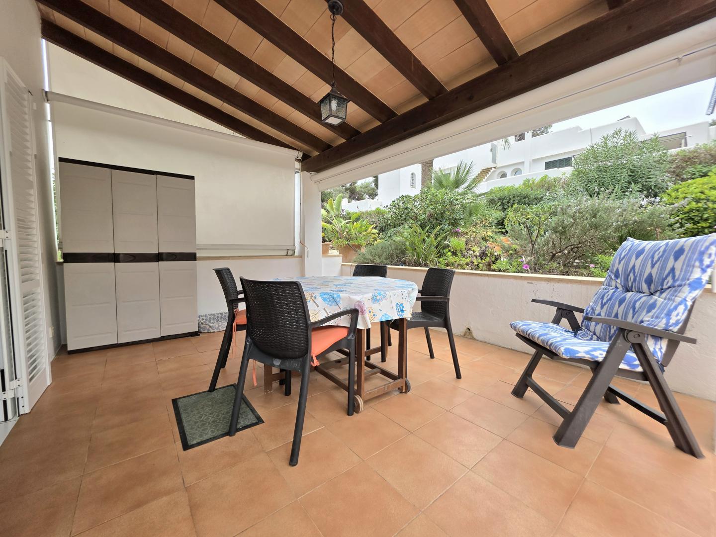 FROM THE LIVING ROOM, YOU STEP OUT ONTO A LOVELY PRIVATE TERRACE WITH A COVERED PORCH — THE PERFECT SPOT TO RELAX AND ENJOY THE ISLAND’S CLIMATE IN COMPLETE PEACE AND PRIVACY. THE PROPERTY ALSO BENEFITS FROM A DELIGHTFUL, WELL-MAINTAINED COMMUNAL GARDEN THAT ADDS GREENERY AND CHARACTER TO THE SETTING.