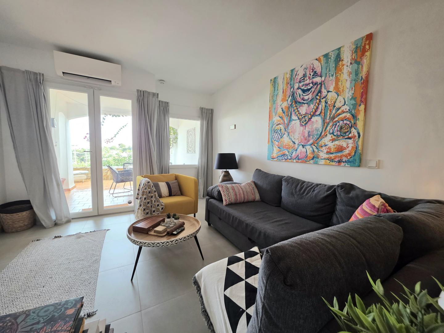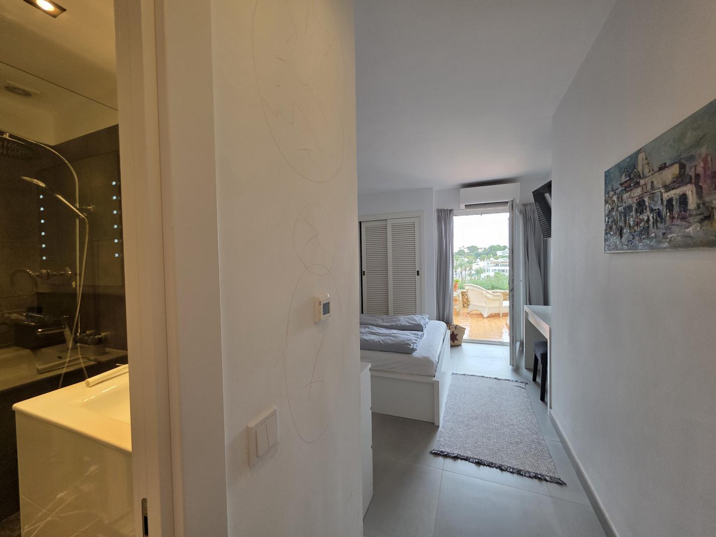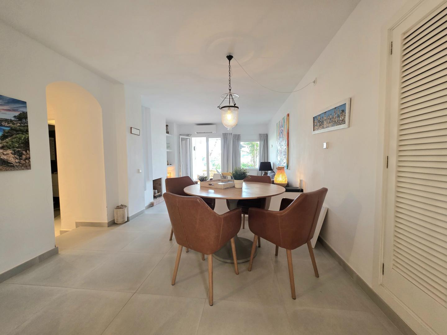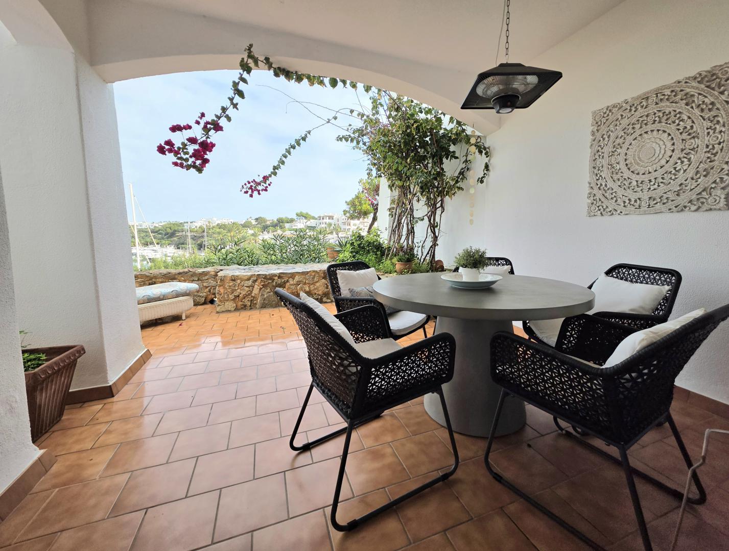 YOUR DREAM CAN COME TRUE WITH THIS OUTSTANDING FRONTLINE PROPERTY AT THE CALA D’OR MARINA. LOCATED ON THE GROUND FLOOR, THE APARTMENT HAS ABOUT 95M2 OF LIVING AREA PLUS APPROX 24M2 OF PARTLY COVERED AND OPEN TERRACE WITH DIRECT ACCESS TO THE COMMUNAL SWIMMING POOL AND MEDITERRANEAN GARDENS. OPEN PLAN KITCHEN WITH BREAKFAST BAR LEADING ONTO THE SPACIOUS LOUNGE/DINING AREA  WITH FIREPLACE, 2 DOUBLE BEDROOMS, 2 BATHROOMS WITH SHOWERS (1 EN SUITE). THE APARTMENT HAS BEEN FULLY REFURBISHED WITH NEW MODERN KITCHEN, UNDERFLOOR HEATING, CONTEMPORARY BATHROOMS, AIR CONDITIONING IN ALL ROOMS, DOUBLE GLAZING WINDOWS, NOTHING WAS MISSED OUT. BUT THE HIGHLIGHT IS THE STUNNING VIEW OVERLOOKING THE CALA D’OR MARINA WITH BEAUTIFUL YACHTS, FANTASTIC RESTAURANTS ETC. WHERE ELSE CAN YOU GET THIS INCOMPARABLE HOLIDAY FEELING? DON’T MISS OUT THIS FANTASTIC OPPORTUNITY AND CONTACT US!