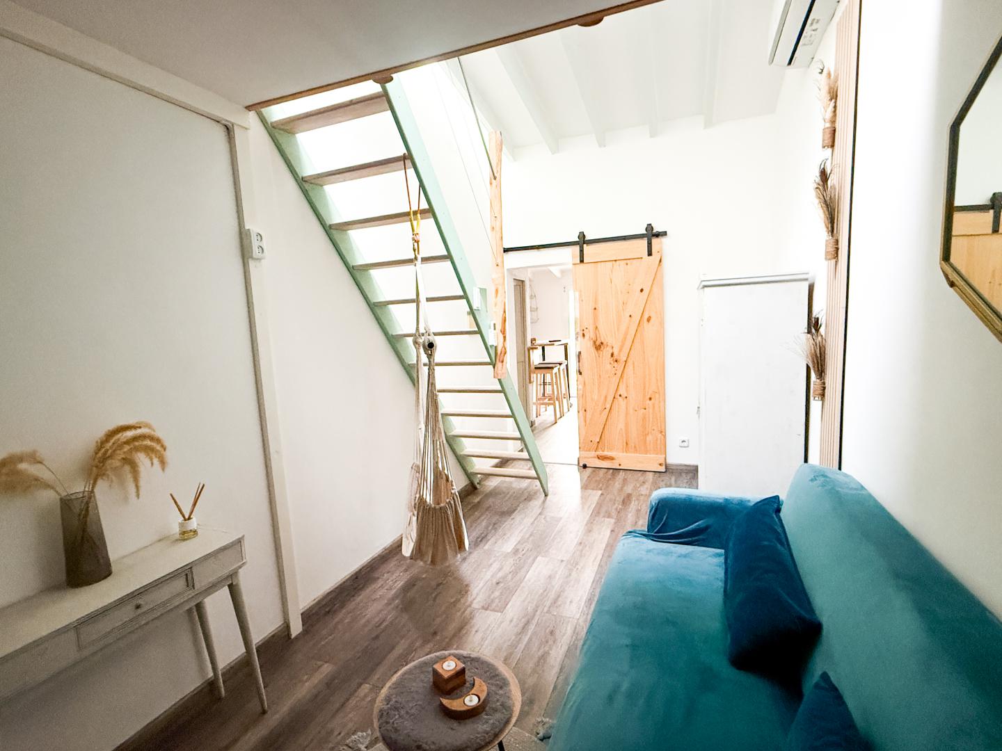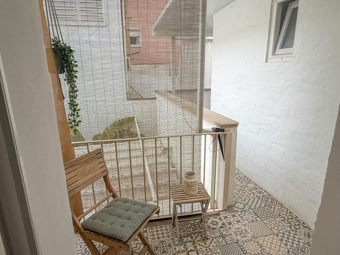 THIS BEAUTIFULLY REFURBISHED 50M2 APARTMENT OFFERS A UNIQUE LAYOUT AND HIGH-QUALITY FINISHES IN ONE OF THE MOST SOUGHT-AFTER AREAS PALMA – SANTA CATALINA. THE CHARMING AND TYPICAL MEDITERRANEAN BUILDING FROM 1870 CONSIST OF ONLY 3 NEIGHBORS AND THIS AMAZING APARTMENT IS ON THE FIRST AND TOP FLOOR. THE MAIN AREA FEATURES A SPACIOUS OPEN-PLAN LIVING AND DINING AREA WITH A FULLY EQUIPPED KITCHEN, COMPLEMENTED BY A COMFORTABLE LOUNGE. A CHARMING GALLERY SLEEPING AREA ADDS CHARACTER AND FUNCTIONALITY TO THE SPACE. THE PROPERTY ALSO BENEFITS FROM A PRIVATE TERRACE FACING A QUIET INTERIOR COURTYARD, INCLUDING A CONVENIENT WASHING AREA. THE MODERN BATHROOM IS FITTED WITH A WALK-IN SHOWER AND CONTEMPORARY FINISHES. ADDITIONALLY, THE PROPERTY INCLUDES A SEPARATE EXTRA BEDROOM, SUITABLE AS A GUEST ROOM OR HOME OFFICE, WHICH IS ACCESSED VIA THE COMMUNAL HALLWAY (SHARED WITH 1 NEIGHBOR). THE APARTMENT HAS BEEN REFURBISHED TO A HIGH STANDARD, INCLUDING NEW FLOOR AND ROOF INSULATION, DOUBLE-GLAZED WINDOWS, AND AIR CONDITIONING IN ALL ROOMS. IT COMES FULLY FURNISHED AND READY TO MOVE IN. THE PROPERTY IS ALSO CONNECTED TO CITY GAS FOR HOT WATER. LOCATED IN A PRIME AREA OF SANTA CATALINA, THE APARTMENT IS WITHIN 5 MINUTES WALKING DISTANCE OF JAIME III, PASEO MARÍTIMO, MERCAT DE SANTA CATALINA ETC., OFFERING IMMEDIATE ACCESS TO RESTAURANTS, SHOPS, BOUTIQUES AND PALMA’S VIBRANT CITY LIFE.